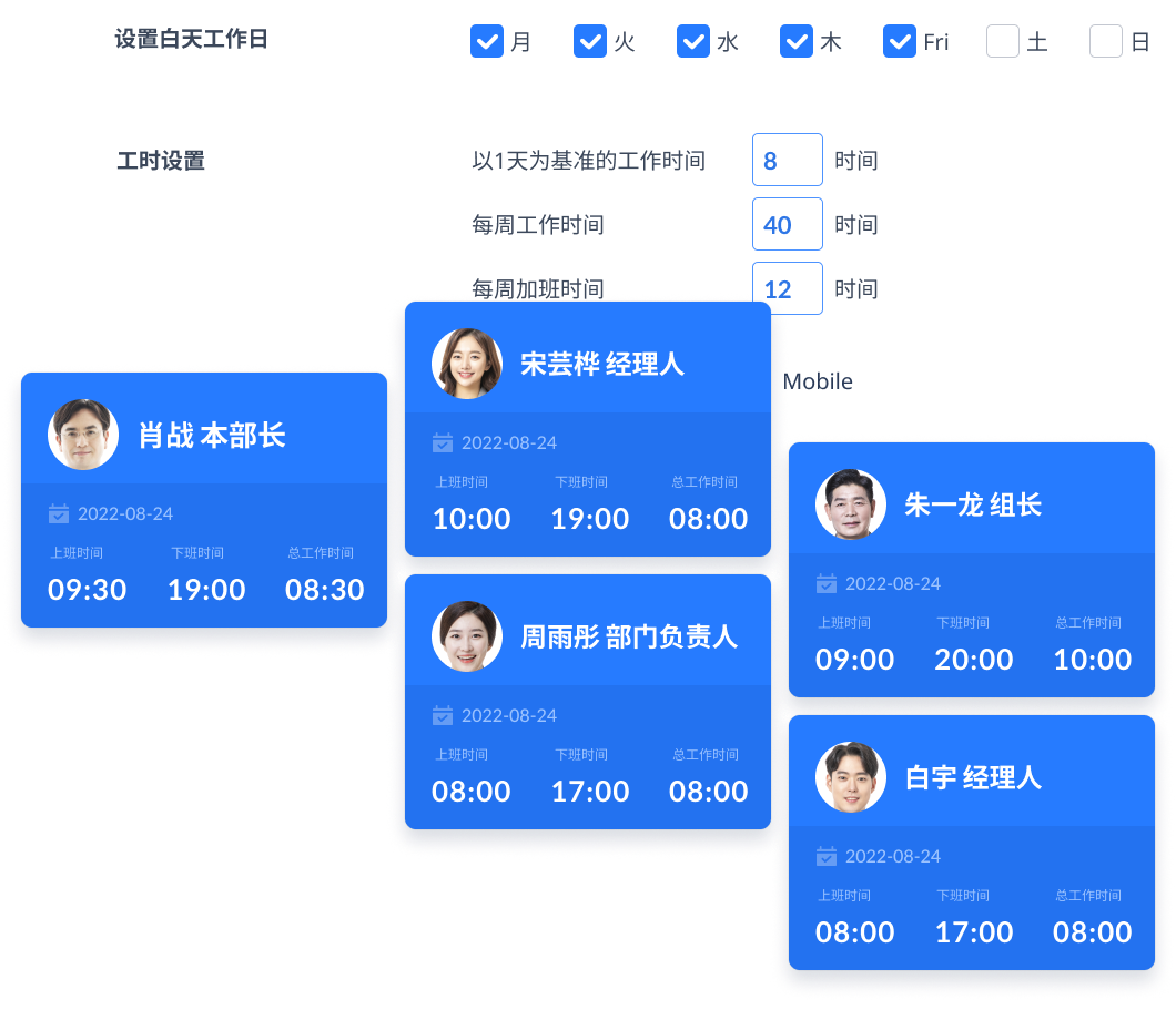 根据我们组织独有的工作类型和休假政策,体验一下简单的设置和便利的使用性吧。